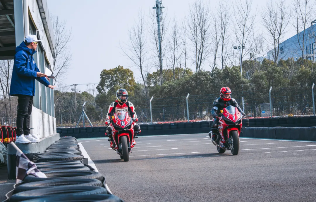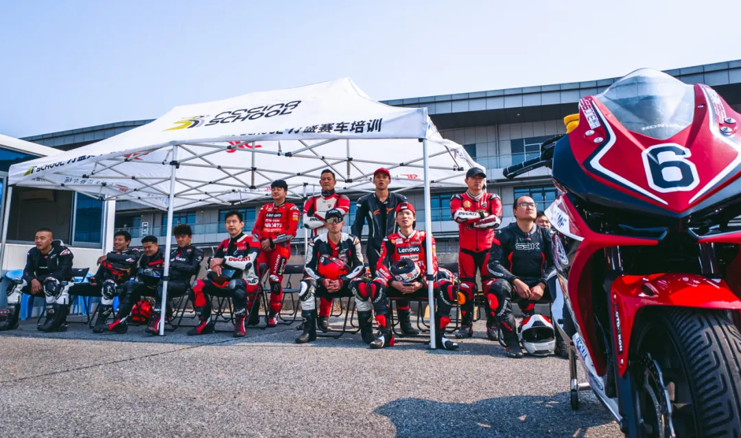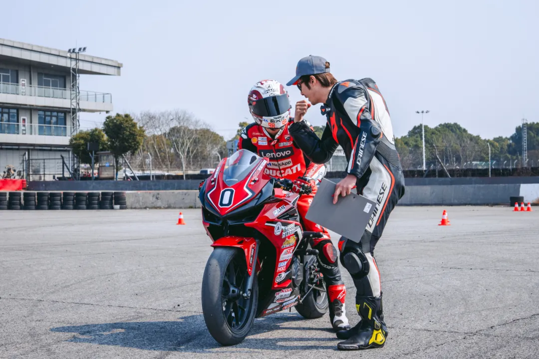 各位学员经过赛车理论基础的学习,对摩托车驾驶的要点知识进行了巩固,经过对学员们的驾驶摸底测试,让教官更加了解大家的基础水平,进行分组练习,实行1v4教学。